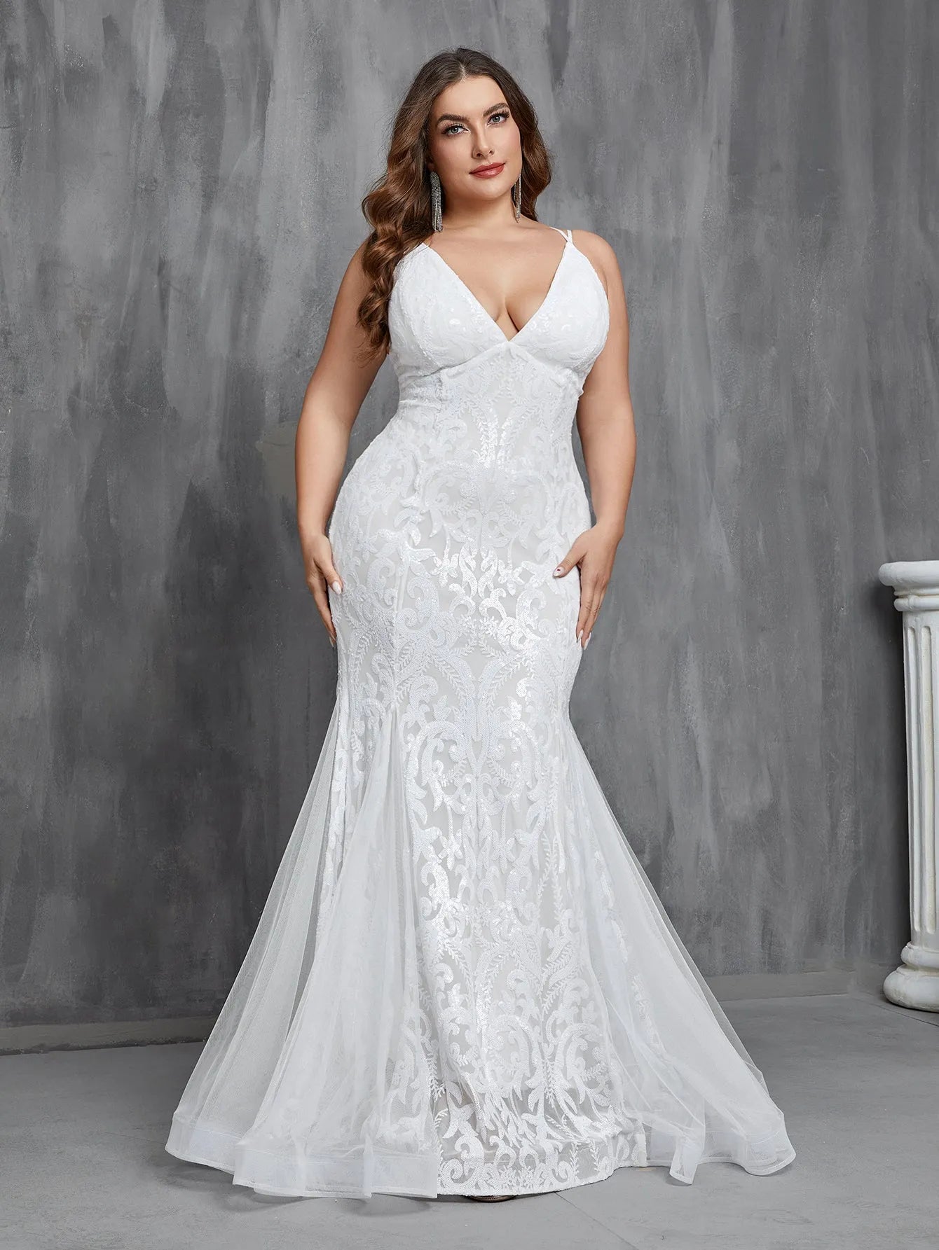 Plus Stylish Lace-up Back Mermaid Hem Sequin Wedding Dress
